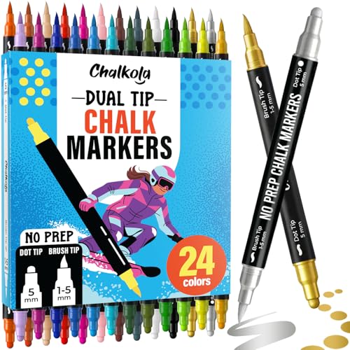 Chalkola Liquid Chalk Markers for Blackboard & Glass (Pack of 16, 6mm Reversible Tip) Washable Chalk Pens for Window, Bistro, Mirror, Car, Wall Calendar, Menu Board | Chalkboard Markers Erasable