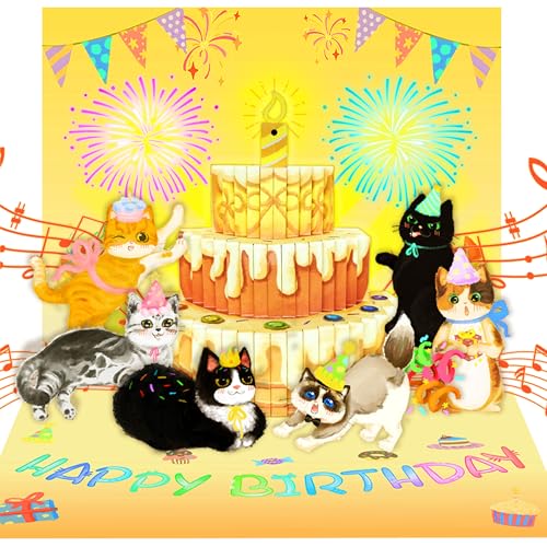 CNLITIHEKA 3D Musical Birthday Card for Women, Light & Music Flower Birthday Cards Pop Up for Mom, Happy Birthday Greeting Cards for Wife Grandma