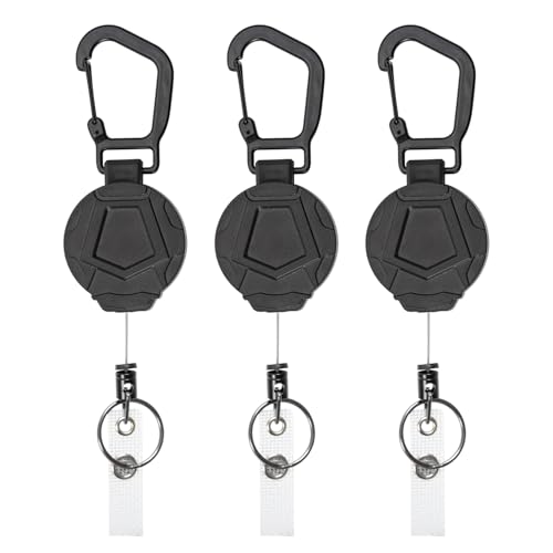 12 Packs Heave Duty Retractable Badge Reels with Carabiner Belt Clip and Key Ring, Badge Holders for ID Card Holders with 26.5 Inch Pull Cord (Black)