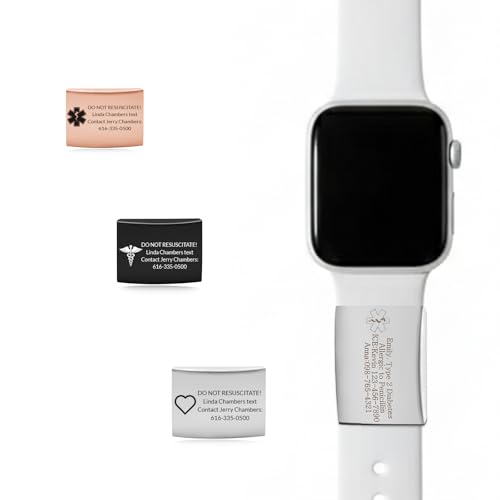 Oneress White Medical ID Watch Band Label for Apple Watch, Engraved BLOOD THINNER On Insulin Tag, Waterproof Stainless Steel Medical Alert Tags for Men and Women YA4313 White-Blood