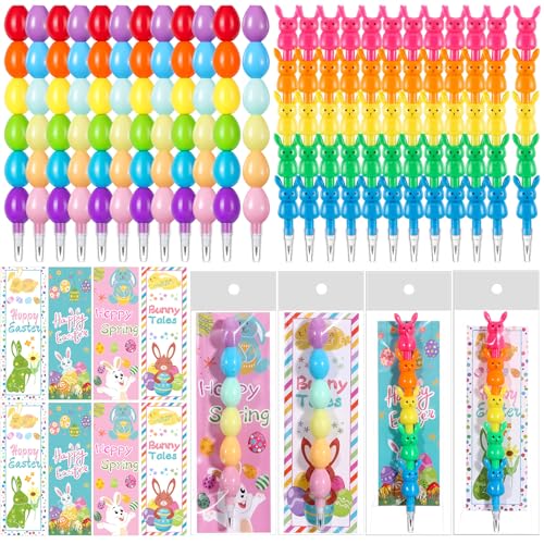 Lopenle 12 Pieces Adorable Rabbit Pencils Novelty Bunny Stacking Pencils Cats Stackable Pencils Animal Pencil With 64 Replacable Refills For School Office Using