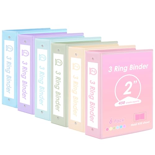 1 Inch Binders 3 Ring,6 Pack Three Ring Binder with 2 Pockets,PVC-Free,Customizable Clear View Cover for 8.5 x 11'' Letter Size Papers, Round Ring锛 Ideal for School, Office Supplies