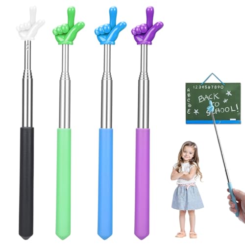 4Pcs Telescopic Teachers Pointer, Mini Extendable Hand Pointer Finger Pointer Stick, Retractable Classroom Pointer for Elementary School Kindergarten Teacher Supplies (Black Pink Blue Purple)
