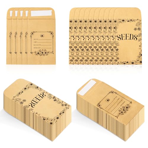 200pcs Self Adhesive Sealing Seed Envelopes, Reusable Packets, Package Bag Small Brown Paper for Collection of Flower Vegetable Plants Seeds