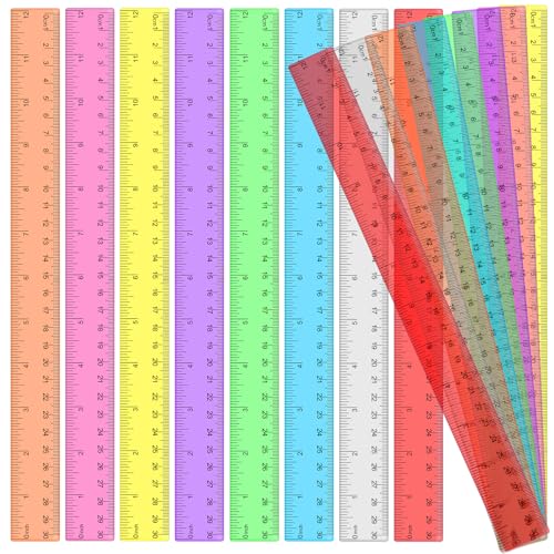 Fidqiog Clear Plastic Ruler 30cm 12 Pack, Plastic Ruler for School Supplies, Metric Ruler & Clear Ruler with Centimeters/Inches