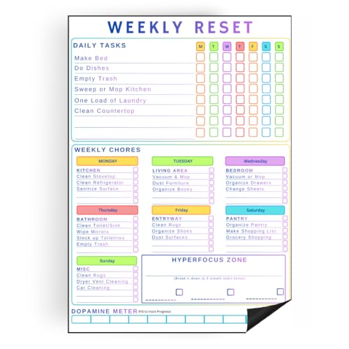 Yes4Quality Large Magnetic Dry Erase Chore Chart 48 x 33 cm (19x13鈥), Multiple Chores Checklist for Family Weekly Tasks, Stain Resistant Fridge White Board Planner W/ 5 Magnetic Markers