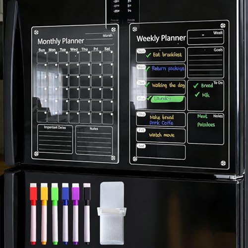 PigPotParty Acrylic Magnetic Chore Chart for Kids on Fridge 鈥 2 Pack 9.5"x12" Weekly Dry Erase Chore Board with 8 Fine Tip Colorful Markers and 1 Towel 鈥 for Multiple Kids, Teens and Family