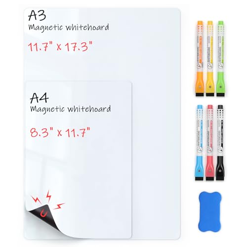 Nicpro Dry Erase Small Whiteboard A3 with Non-Slip Stand, 12 x 16'' Double Sided Magnetic Desktop White Board with 8 Pens, Eraser, Magnet, Portable Writing Easel for Kid Drawing Student Classroom Use