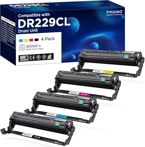 [DR229CL Drum Unit ] DR229 High Yield 4 Pack Compatible Replacement for Brother DR229CL DR-229 DR 229XL Drum for MFC-L3780CDW MFC-L3720CDW HL-L3220CDW HL-L3300CDW HL-L3280CDW (DR-229 Drum Unit Only)