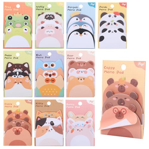 Fuguan 32 Packs Cute Animal Sticky Notes, 8 Styles Self-Adhesive Pads for Pet Lovers, Office, School Supplies, Teacher's Day Gift (640 Sheets)