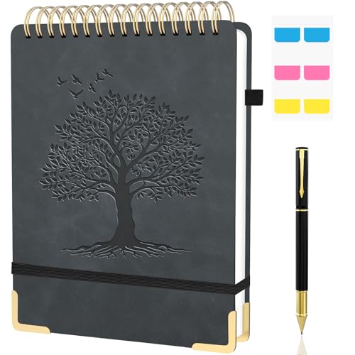 12Pack Spiral Notebook with 10pcs Sticky Tabs,A5 Lined Notebooks120 Pages,Hardcover Notebook for Women Men,Coil Notepad,5.5" x 8.3",Lined Paper for Work, School,Office锛圔lack锛