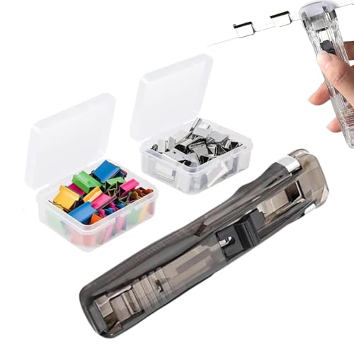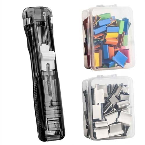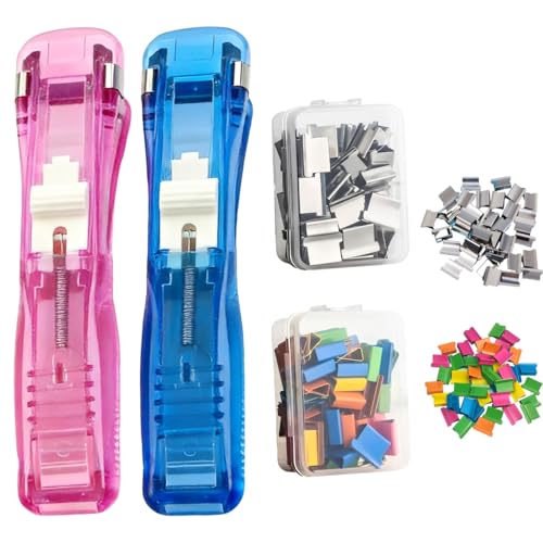Koceci 2PCS Paper Clip Dispenser with 200PCS Clam Clips, Portable Mini Stapler Holeless Stationery Push Clip and Paper Clamp for School Office Home (2 Colors)