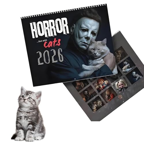 Horror Cats 2026 Calendar, Horror Movie and Cats Themed Calendar, Unique horror and Christmas Decor Wall Calendar for Goth Spooky Cat Lover Gifts