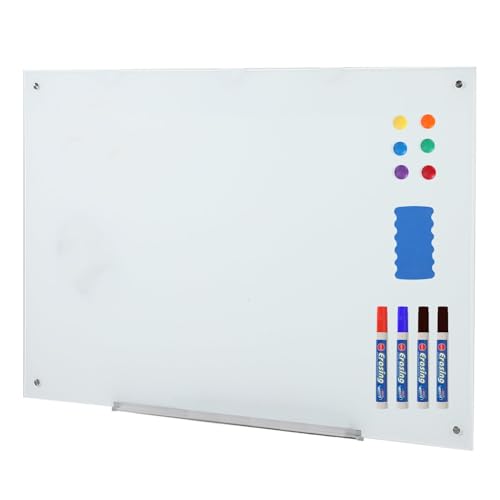 Chalkola Glass Desktop Whiteboard with Storage - Dry Erase Board, Work Desk Organizers, Computer Keyboard Stand, Home Office Desk Accessories, Small White Board, Workspace Desktop Buddy + 3 Markers