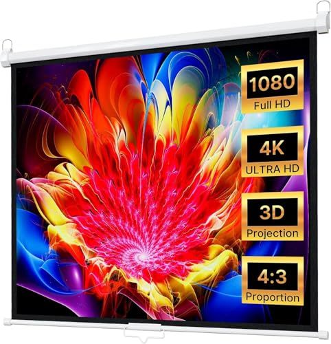 Lilvduybz 60 Inch White Manual Pull Down Projector Screen, 4:3 Aspect Ratio, 4K/3D/1080 HD High-Definition Retractable Projector Screen, Retractable Wide Screen for Indoor Home and Office Cinemas