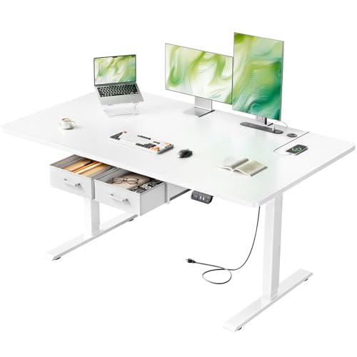 FEZIBO Electric Standing Desk with Double Drawers, 48 x 24 inch Height Adjustable Sit Stand Desk with Monitor Stand, 4 Memory Prset Ergonomic Stand Up Desk (Maple)