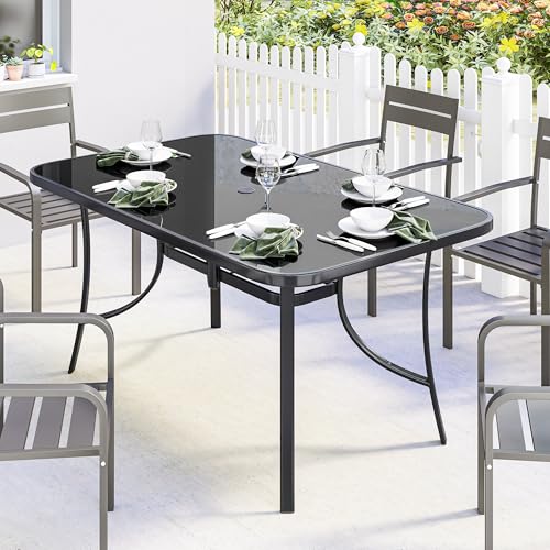 Outsunny Outdoor Dining Table with Umbrella Hole, Square Patio Dining Table with Tempered Glass Top and Steel Frame for Garden, Balcony, Black