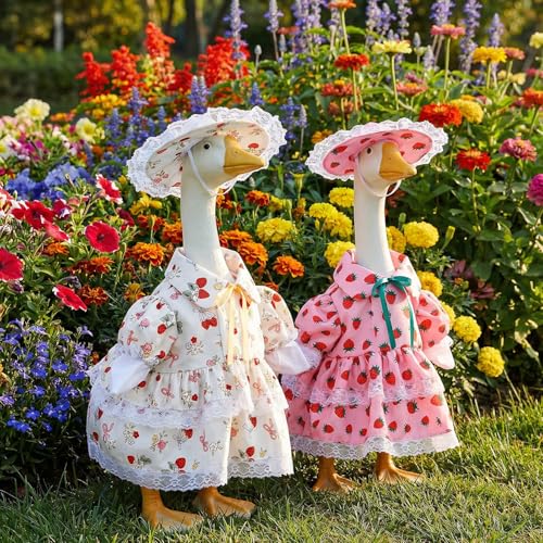 Yymobt Spring Porch Goose Outfit Flower Porch Goose Clothes Geese Skirt Costume with Hat Dress for Spring Outdoor Yard Decor
