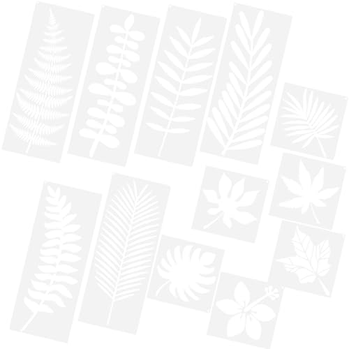 TIAMECH 6 Pcs A4 Reusable Geometric Stencils for Painting - Hollow Leaves & Abstract Curve Lines Texture Layering Templates, DIY Wall Art, Furniture, Scrapbook & Crafts