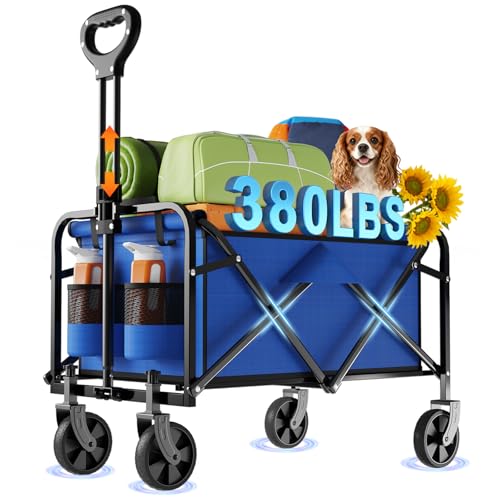 AMAZINGHOME Wagon Cart Foldable - 100KG Weight Capacity Folding Wagon with 5 Inch Silent Brake Universal Wheels, Adjustable Handle, Portable Garden Cart with Cup Holder for Camping, Picnic