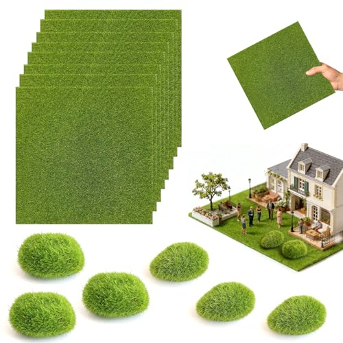 Artificial Grass Mats Set 鈥 15 Pieces, 15x15 cm, Realistic Synthetic Turf, Durable and Easy to Clean, Ideal for Indoor and Outdoor Miniature Landscaping, Dollhouses, Terrariums, and DIY Projects