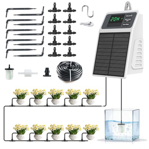 Lewisia 5W Solar Drip Irrigation System with Timer Auto Watering Kit for Garden Raised Beds Patio Lawn Greenhouse Up to 30 Plants
