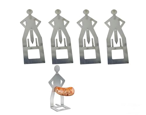 Rolling Sausage Grill Stainless Steel BBQ Hot Dog Roller Rack with Wood Long Handle and 4 Skewers for Outdoor Grill, 5 Hotdog Capacity, Medium