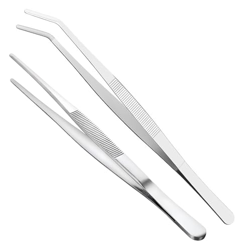 2PCS Kitchen Tweezers Tongs, 30cm Extra-Long Stainless Steel Metal Heavy Duty Cooking Tweezers, Precision Serrated Tips Tongs for BBQ, Grill, Turning Meat, Serving, Culinary, Pasta, Salad, BBQ