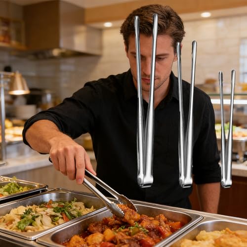 HEMOTON Japanese Style Barbecue Tongs 11.4 Inch Stainless Steel Heat Resistant Clamps Set of 2 for Bakery an