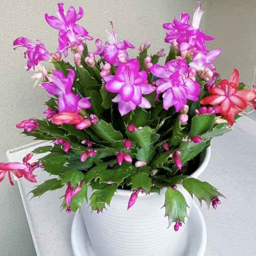 Christmas Cactus Plant (Schlumbergera) - 1/2/3 Options, Easy-Care Blooming Succulent, Ideal Holiday Decor Indoor Houseplant for Canadian Homes, Low-Light Tolerant, Ready to Grow.No Pot. (Purple,1)