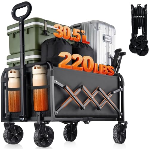Wagon Cart Foldable, Collapsible Wagon Cart with 360 LBS Max Load & Expandable Storage, Sturdy Foldable Grocery Cart with 2 Cup Holders for Outdoor, Groceries, Garden & Camping
