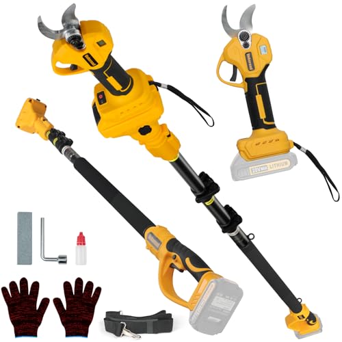2-in-1 Electric Pole Pruning Shears Cordless Compatibility with 20V MAX Battery, 1.6" Cutting Diameter Pruner, 14.8 FT MAX Extension Pole Saws for Tree Trimming, LCD Display(NO Battery)