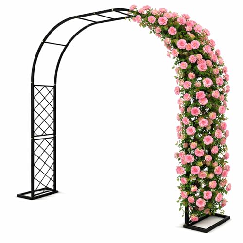 Garden Arch Trellis for Climbing Plants Outdoor 7.6Ft Metal Garden Arbor Archway with Planter Decorations Wedding Arch Backdrop Stand for Ceremony Christmas Party Backyard and Patio, Black