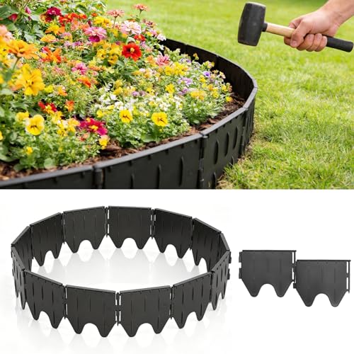 Landscape Edging Border No Dig - 20FT 4IN Tall Garden Edging Border with 20 Stakes, Plastic Garden Fence Lawn Edging Flexible for Landscaping, Flower Beds, Yard, Pathway with Connectors