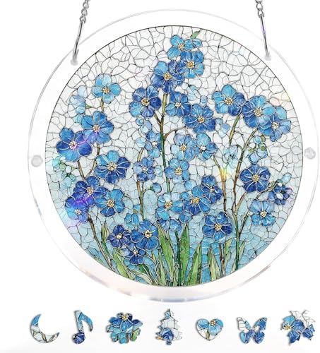 Stained Glass Window Hanging, 8 Inch Wildflower Stained Glass Suncatcher, Suncatchers for Windows Hanging, Wildflower Window Decor, Florist Gift, Flower Lover Gifts, Gifts for Mom, Grandma