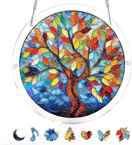 Stained Glass Window Hanging, 8 Inch Butterfly Sun Catchers Indoor Window, Suncatchers for Windows Hanging, Home Decoration and Christmas, Festival, Mother's Day, Birthday, Gifts for Women, Mom