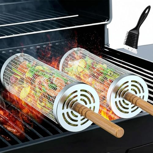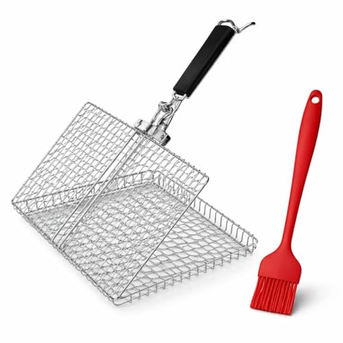 SHIZZO Grill Basket Value Set, Barbecue BBQ Grilling Basket , Stainless Steel Large Folding Grilling baskets With Handle, Portable Outdoor Camping BBQ Rack for Fish, Shrimp, Vegetables, Barbeque Griller Cooking Accessories, Gift, Gifts for father, dad, husband