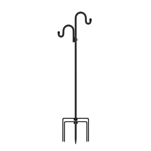 Kingsyard Double Shepherd Hooks for Outdoor - 76" Heavy Duty Bird Feeder Pole with 5-Prong Base, Adjustable Garden Pole for Hanging Bird Feeders Plants Solar Light Lantern, Black