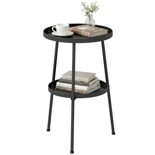 danpinera Outdoor Side Tables, Weather Resistant Steel, Small Round End Table for Patio Yard Balcony Garden Bedside Black