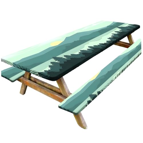 Sunflower Picnic Table Cover with Bench Covers Camping Essentials Wooden Grain Outdoor Table Covers with Elastic Waterproof Fitted Tablecloth for RV Picnic Travel