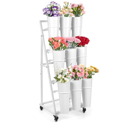 Bamworld Plant Stand Indoor Tall Plant Shelf Outdoor Corner Plants Table Wood Flower Stand for Living Room Balcony and Garden (9 pots)
