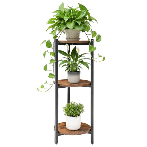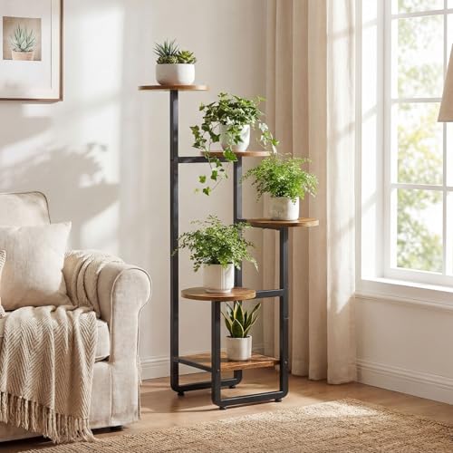 iDavosic.ly 5 Tier Metal & Wood Plant Stand, Black, Indoor & Outdoor, Multi-Tier, 5 Levels, 200 lbs Capacity
