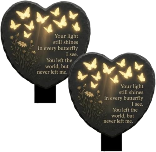 J-Fly Metal Butterfly Solar Lighted Wall Art Decor Outdoor Garden Fence Art Hanging Decorations for Yard Lawn Balcony Patio 13 * 14 inch Large