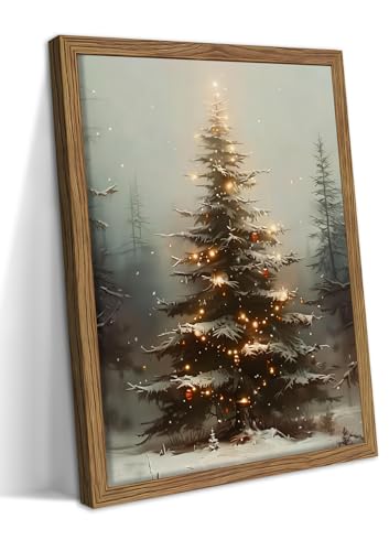 Christmas Wall Art Winter Xmas Canvas Decor Christmas Tree Picture Merry Christmas Wall Art Minimalist Vintage Painting Beige Farmhouse Prints Holiday Poster for Bathroom 12x16x3 Inch Framed