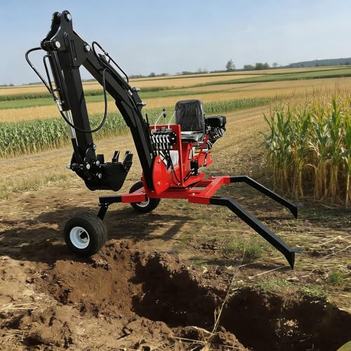 Professional Tow Behind Backhoe Excavator, 360掳 Hydraulic Mini Backhoe with Multi Function Valves & Buckets, Compact Tractor Backhoe for Contractors & Property Owners