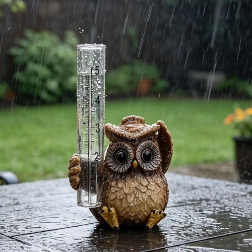 HOBYLUBY Hummingbird Rain Gauge with 5 Inch Glass Tube, Solar Rain Gauge with LED Lights Rain Water Gauge Decor for Patio, Garden Yard, Measuring Precipitation