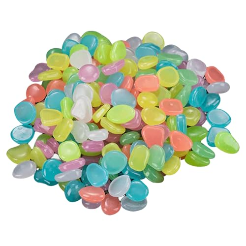 100Pcs Luminous Stones Glow in The Dark Garden Pebbles Rocks for Home Outdoor Walkways Garden Path Patio Lawn Garden Yard Fish Tank Decor (Multicolor)