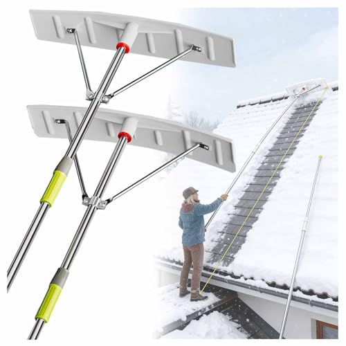 Snow Shovel, Ohuhu Snow Shovel with Wheels, 29 Inch Heavy Duty Rolling Snow Pusher for Snow Removal, Adjustable Height & Angle, Ergonomic Handle for Driveway & Pathways