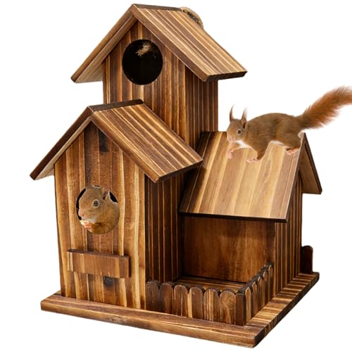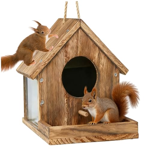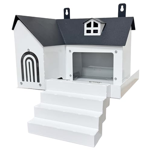 Squirrel Houses for Outside, Iron Feeder with Clear Window - with Step for Backyard, Garden, Outdoor/ 9.4x7.3