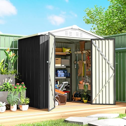 VEVOR 6 x 4 FT Metal Garden Shed, Outdoor Storage Shed with Lockable Doors & 4 Louver Vents, Peak Roof Metal Sheds Outdoors Storage, Storaged Sheds Clearance for Backyard, Garden, Patio, Bike, Gray